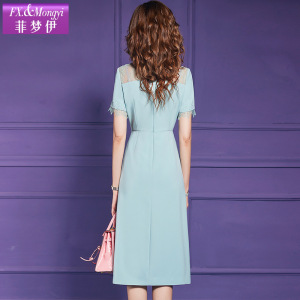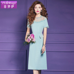 菲夢伊蕾糸辺釘珠ワンピース女性半袖夏高級優雅名媛端正気質修身スカート