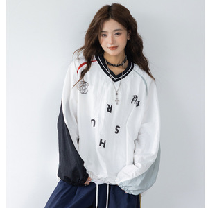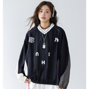 国境を越えたアメリカのレトロなコートvネックの男性のゆるい速乾性長袖カップルが色を合わせて上着のコートをつなぎ合わせた