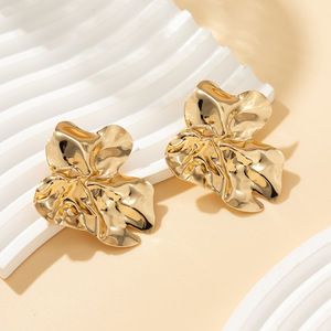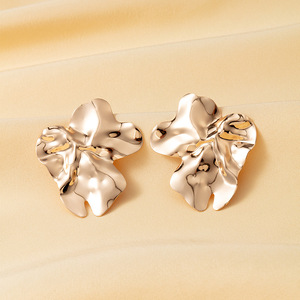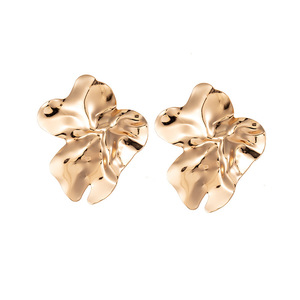欧米のクロスボーダーのレトロな大げさな液体の金属のイヤリングの性の冷たい風のデザイン感の不規則な葉のイヤリング
