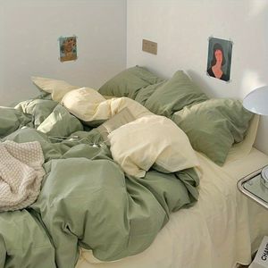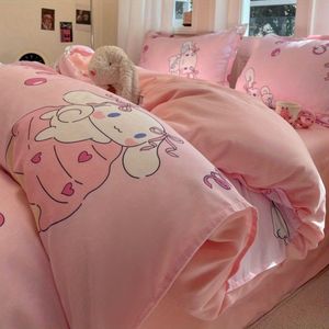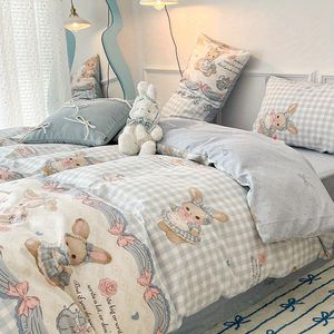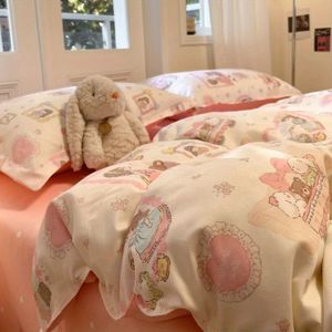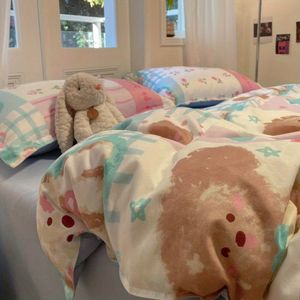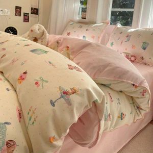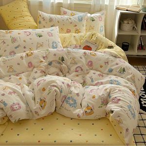 スイートガーリースタイルホームベッドルームウォッシュコットンベッドシーツとキルトカバー4点セット学生寮3点寝具セット