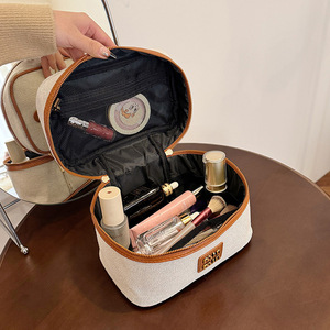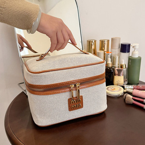 新しい化粧品バッグ、大容量の化粧品収納バッグ、高級金属ロゴ入り洗面用具バッグ