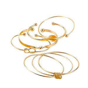 アマゾンクロスボーダー新型レトロワイドブレスレットシンプルな幾何学的なオープンビーズの金色の光沢のあるブレスレットの装飾セット