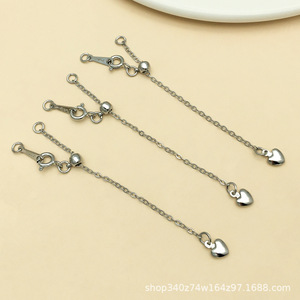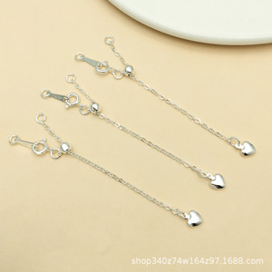 T101-6cm铜镀厚银强保色爱心套装带硅胶定位可抽拉延长链-1.13g