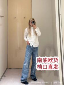 [Nanyou Weiwei 高級婦人服] 25 新しいトレンディな多用途ジッパーエンボス加工デニムストレートパンツ