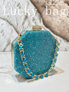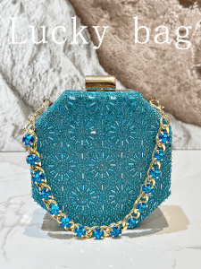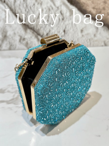 クロスボーダー高級ホットダイヤモンド装飾ブルーイブニングバッグ女性のパーソナライズされたミニハンドバッグチェーンバッグイブニングバッグ卸売