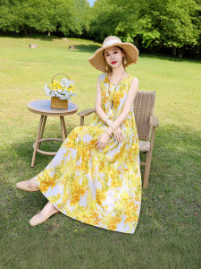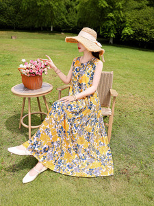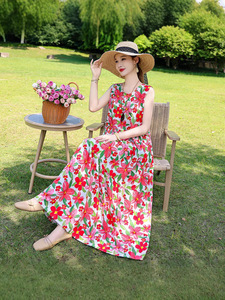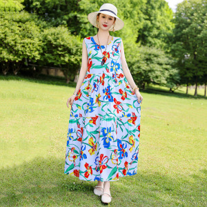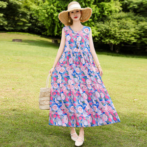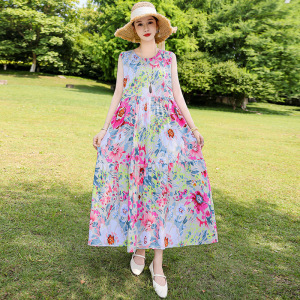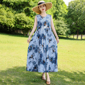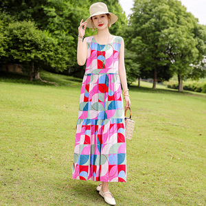 ハイエンドの袖なしの若いタイプの綿のワンピースの女性の夏の海辺の休暇の大きいサイズの外は膝の長いスカートのビーチのスカートを着ます。