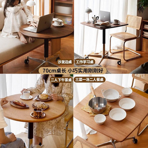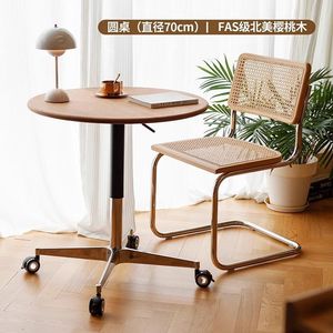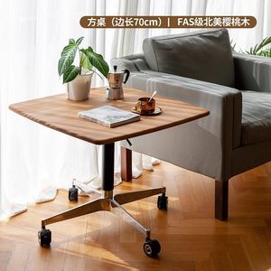 人気の 2025 新しいコーヒーテーブル北米無垢材チェリーウォールナットリフティングサイドテーブルラウンドテーブルモバイルベッドサイドリビングルーム