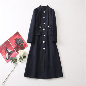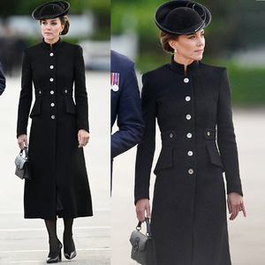 ケイト王女と同じスタイル 22 秋冬レディーススタンドカラー長袖ウエストレースウェビングスプライシングロングウールジャケット
