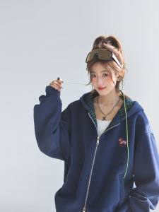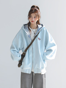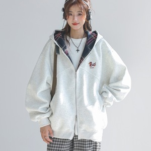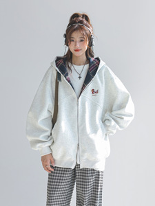 「チャンt 2nd」韓系の格子はソーセージと犬の刺繍のコートをつなぎ合わせます。