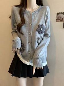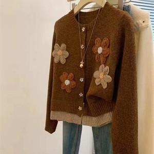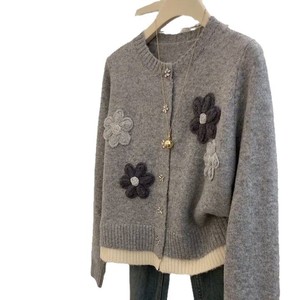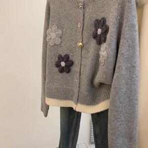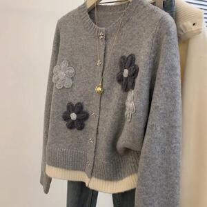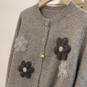 2025秋のデザイン高級感のある手作りの花のニットカーディガン