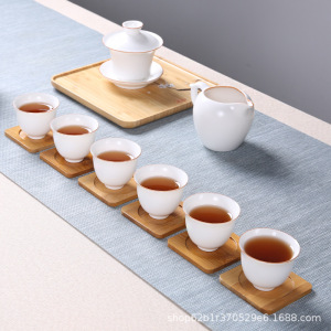 竹製コースター正方形円形コースターカンフー茶道竹芸部品天然断熱マット彫刻ロゴ