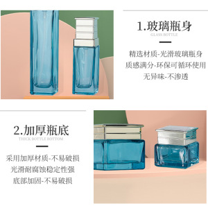 スポットスクエア化粧品ガラスセットボトル 40 ミリリットル-120 ミリリットル厚底ローションポンプボトルスクエアフェイスクリームボトル