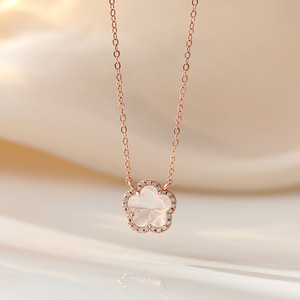 999純銀粉水晶桜ネックレス女性純銀韓国版小清新少女感ins気質鎖鎖爆金