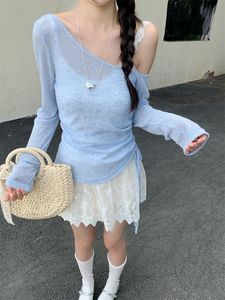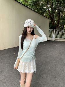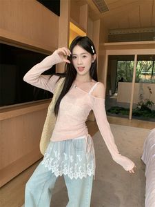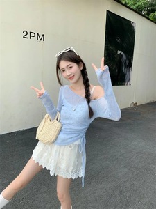 スノーフレークテンセル + ピュアコットンベストレースキャミソールオフショルダー巾着薄手長袖日焼け止めブラウスレディーススーツ