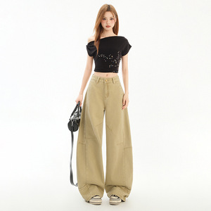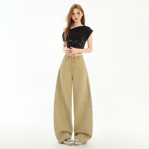 アメリカのレトロな街頭のカードの曲がりくねったナイフのジーパンの女性2025の新型のゆったりした広脚のデザイン感の小さい大衆の鎌のズボン