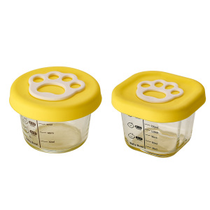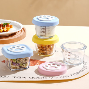 スクエアベアシリコンベビーフードボウル、子供用特別なガラスフードボウル、密封可能、ポータブルストレージボックスクロスボーダー