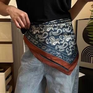 韩系藏青色腰果花丝巾春夏百搭复古仿真丝领巾扎发装饰70cm小方巾