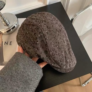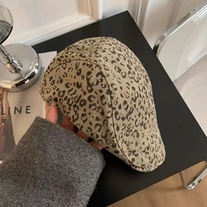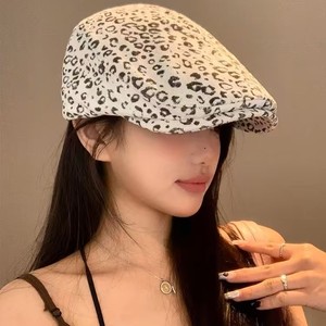 アメリカのレトロなギャル風のヒョウの紋様の前に帽子をかぶっています。