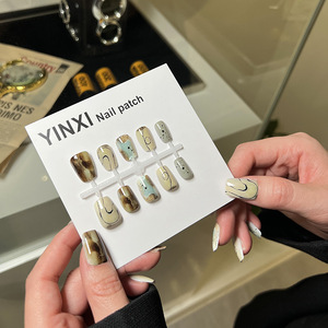 落書きの線がぼやけていて、プレハブは甲の短いタイプの2025の新型のinsネットの赤い半製品の爪の貼ることができます。