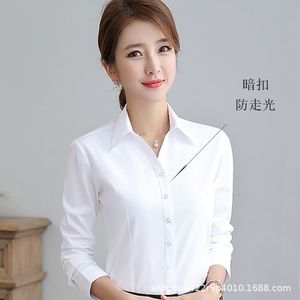 コットンツイル長袖シャツVネック露出防止ウエスト万能作業服シャツ春秋気質プロフェッショナルウェア