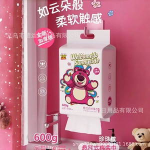【ZM56305-T】ピンクと白のストロベリーベア 600g 吊り下げコットンソフトタオル
