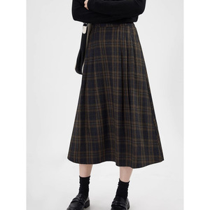 桂儿「春日格呢」经典元素!格纹半身裙女法式复古显瘦毛呢a字裙