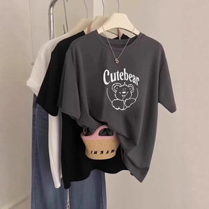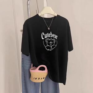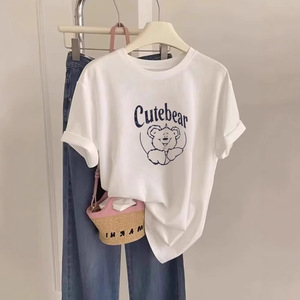 2025 新しい夏のレタープリント白半袖 T シャツ女性の綿ルーズ多用途外国スタイル年齢軽減トップ
