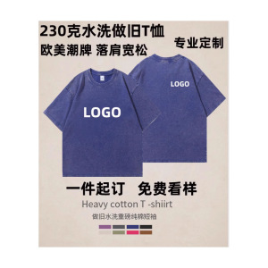 クロスボーダー230g純綿アメリカンウォッシュ加工ヴィンテージ風雪花染めレトロオーバーサイズメンズ半袖Tシャツ