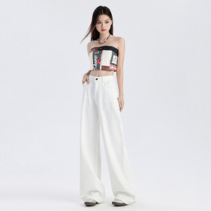 多巴胺柠檬黄阔腿牛仔裤女夏季新款设计感宽松慵懒风拖地大直筒裤