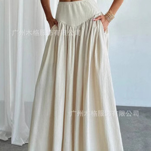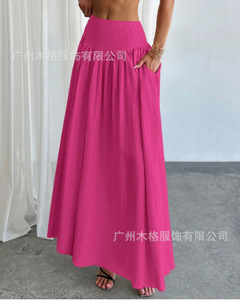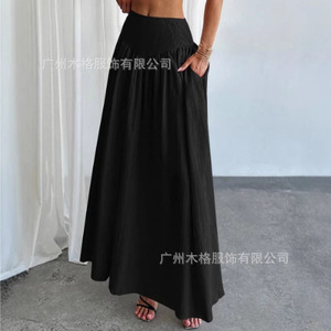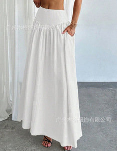2025型欧米の国境を越えた新型女性のしわ高腰A線スカートのサイドポケット付き通勤、優雅、休暇