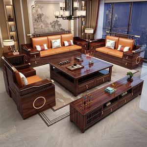 新中国式烏金木実木ソファーセット現代シンプルサイズ戸型冬夏両用客間収納ソファー