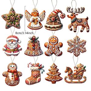 ホリデーギフトの装飾に適したサンタクロースのパターンが描かれた木製のクリスマスオーナメントの新しいクロスボーダー製品
