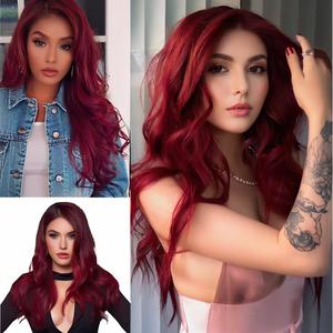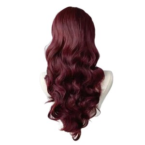 クロスボーダーウィッグヨーロッパとアメリカのバーガンディビッグウェーブロングカーリーファッション外国貿易人気の化学繊維フルヘッドウィッグ高温シルク