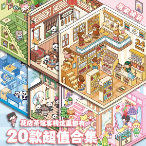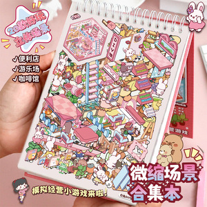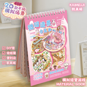 ミニチュアシーン合集本3d立体小屋ミニチュアシーンシール手帳造景シール子供知育玩具