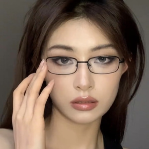レトロな四角形の清冷感の金属の銀色のメガネの斯文の負け犬の類の小さい狭い枠のすっぴんのメガネの枠の近視の女性の度数