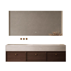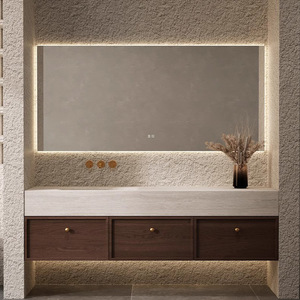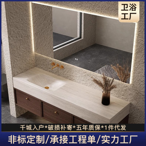 トラバーチンスレート熱曲げ一体型洗面器無垢材バスルームキャビネット組み合わせバスルーム手洗い洗面台洗面台バスルーム