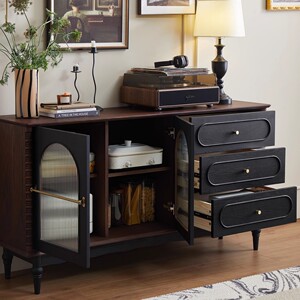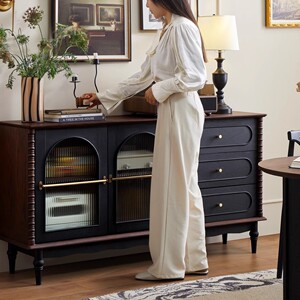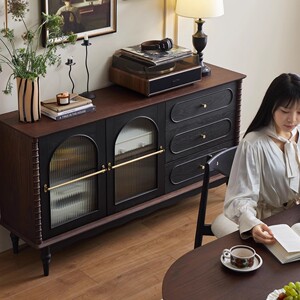 フレンチ無垢材サイドボードリビングルーム中古収納ティーワインキャビネットホームレストランレトロ壁収納キャビネット