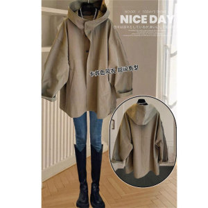 春秋新款上衣简约百搭潮流胖妹妹大码宽松连帽工装风衣外套女装爆