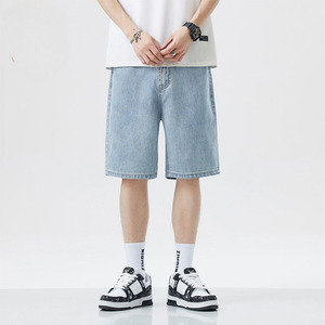 夏用の薄いメンズ快適なデニムショートパンツ、ルーズストレートレッグ5分丈パンツ、特大のルーズシンプルショートパンツ
