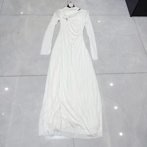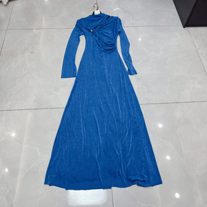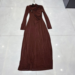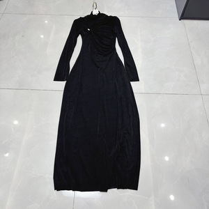 13ラインの新しいベベルカラーロングスリーブメタルバックルデザインクロスフレンチレディスタイルドレスC1 # 1622