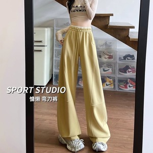 女性用カジュアルスポーツパンツ2025春秋新作ドーパミンナローバージョンストレートシミターバレルルーズワイドレッグフロアレングスパンツ