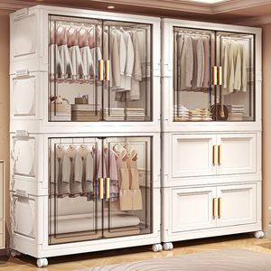 折りたたみ設置不要の収納キャビネット家庭用収納キャビネット多層衣類収納キャビネット寝室ライト高級ワードローブキャビネット