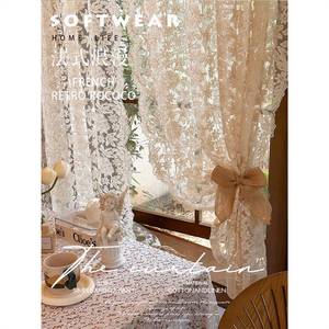 フレンチレトロな宮殿スタイルのレース刺繍クリームガーゼカーテン、半透明の出窓カーテン、パンチングパーティションなしのハーフカーテンドアカーテン