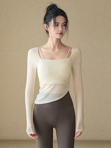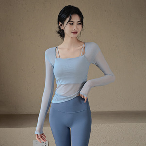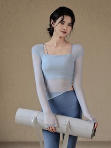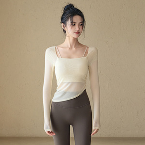 女性用胸パッド付きヨガウェア、メッシュステッチ、速乾性スポーツトップス、ハイエンドピラティストレーニングフィットネスウェア
