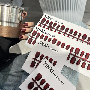 既製ネイルつや消しベルベットキャットアイレッドウェアラブルネイルショートマットウェディングネイル新年ネイルインシーフェイクネイル卸売