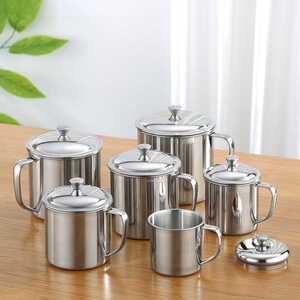 ウォーターカップ、厚みのあるステンレス鋼のカップ、蓋付き家庭用子供用鉄カップ、ハンドル付き飲料水、幼稚園用マウスシリンダー、ティーシリンダー
