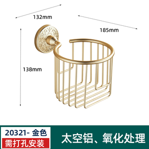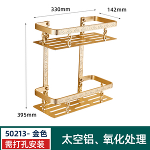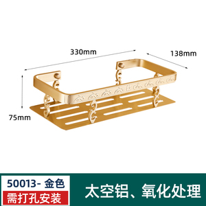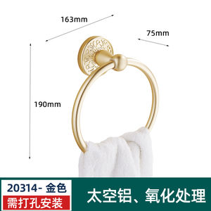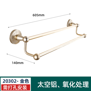 金色太空铝浴室壁挂式毛巾架一体打孔卫生洗手间厕所置物架浴巾架
