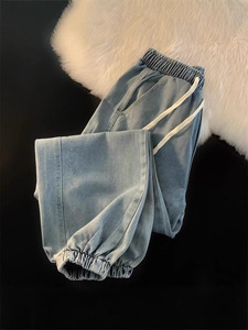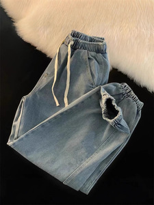 カジュアルな男性のジーパンは腰のデニムのズボンの男性の韓国版のゆったりしているファッションのブランドの揚げた街の足のジーパンを緩めます。