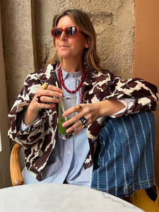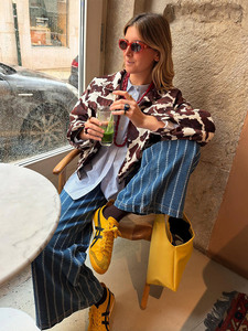 时尚翻领百搭休闲宽松长袖印花短外套2025春季新款跨境欧美风女装