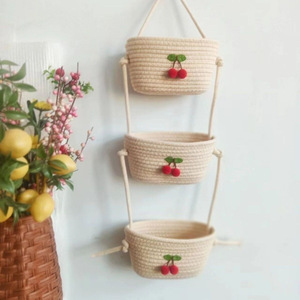 クリエイティブハンギングバスケット壁掛け収納漫画かわいい寮の部屋ホームアーティファクト壁掛け綿糸織りハンギング